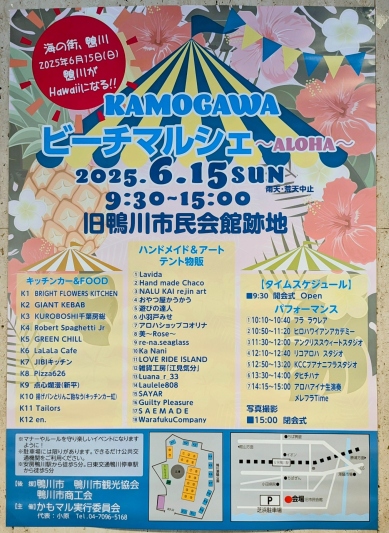 来月のイベント情報『KAMOGAWAビーチマルシェ~ALOHA~』