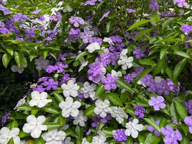 庭では、ニオイバンマツリの花が、