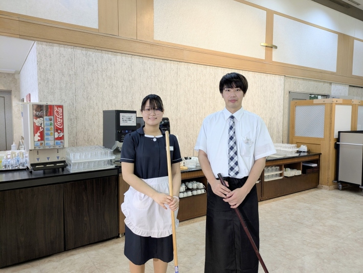 朝食バイキングの提供が終わり、お片付け&お掃除中のところを写真撮らせてもらいました。