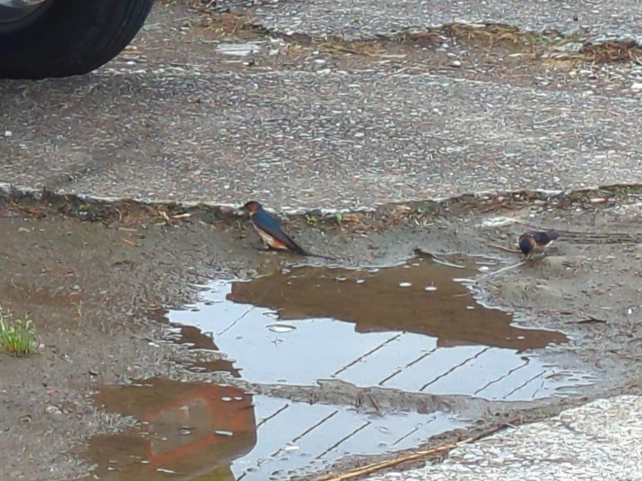 ツバメさん達はせっせとお家を作るためにドロ集め。