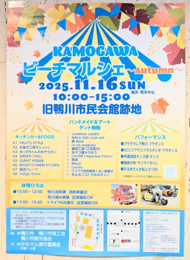『KAMOGAWAビーチマルシェ~Autumn』が11/16(日)が行われます。