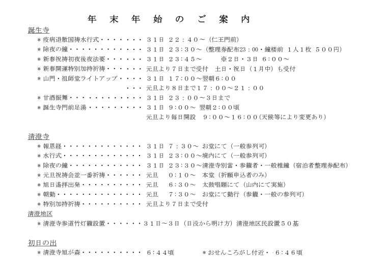 観光協会から年末年始のご案内が届きましたので、ご参考にして頂ければと思います。
