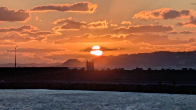 ほんの少しの時間で、⛄雪だるまみたいな夕日になってしまいました。