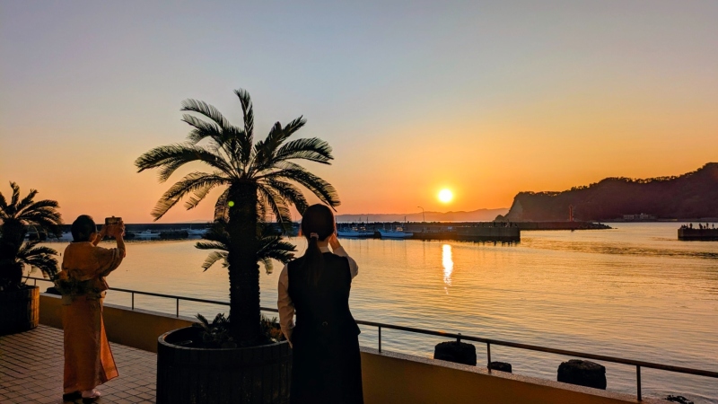 女将のお声掛けでSNS担当も加わり夕日の撮影会でございます。
