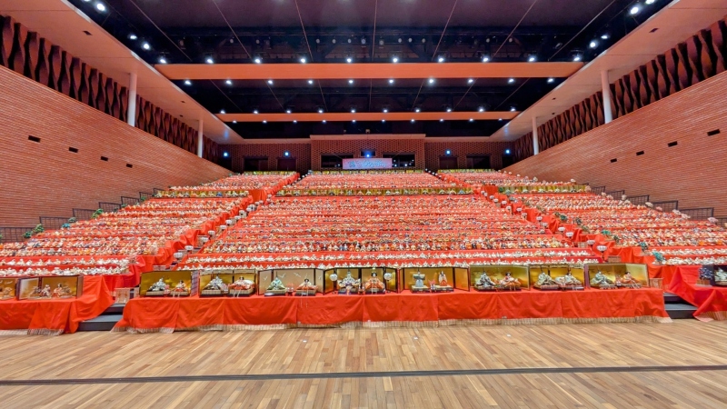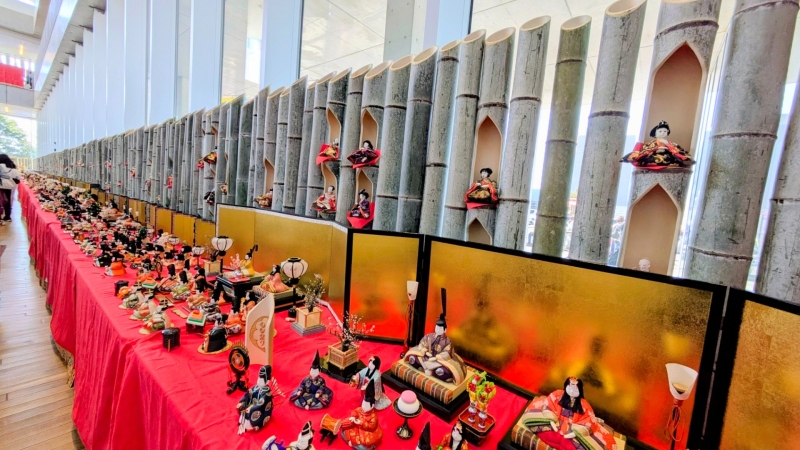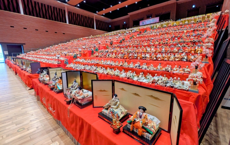 大ホールに段々に飾られた雛人形は圧巻ですね。