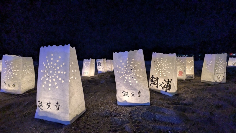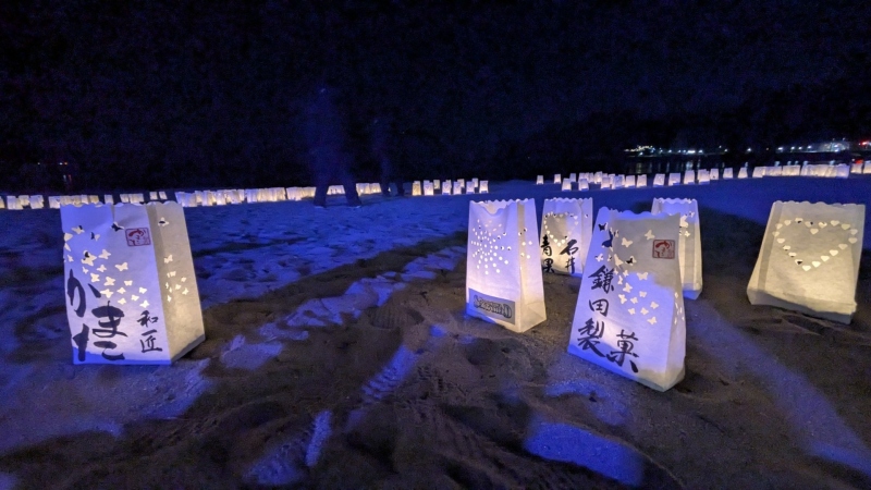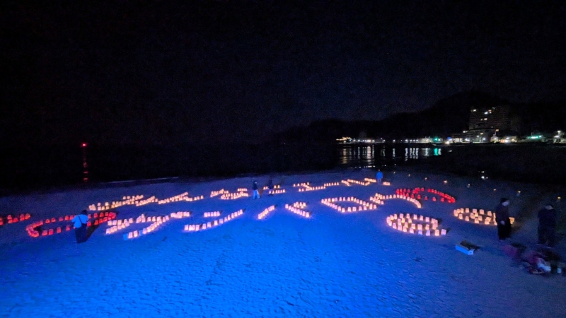 仕事終わりで『第2回砂浜ライトアップと紙袋ランタン』に行ってきました。