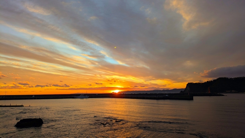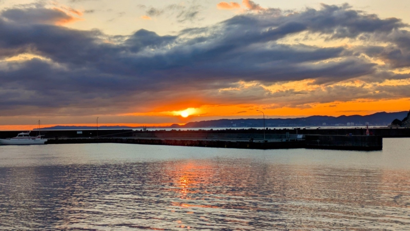2026年最初の夕日でございます。一番最初の夕日はキレイな夕日を・・・と、思っておりましたが、ギリギリ雲の合間から見えた夕日になってしまいました。明日に賭けます!!撮影時間 16:30頃お陰様で本日も満室でございます。本日もお越し下さいました皆様、ありがとうございます。
